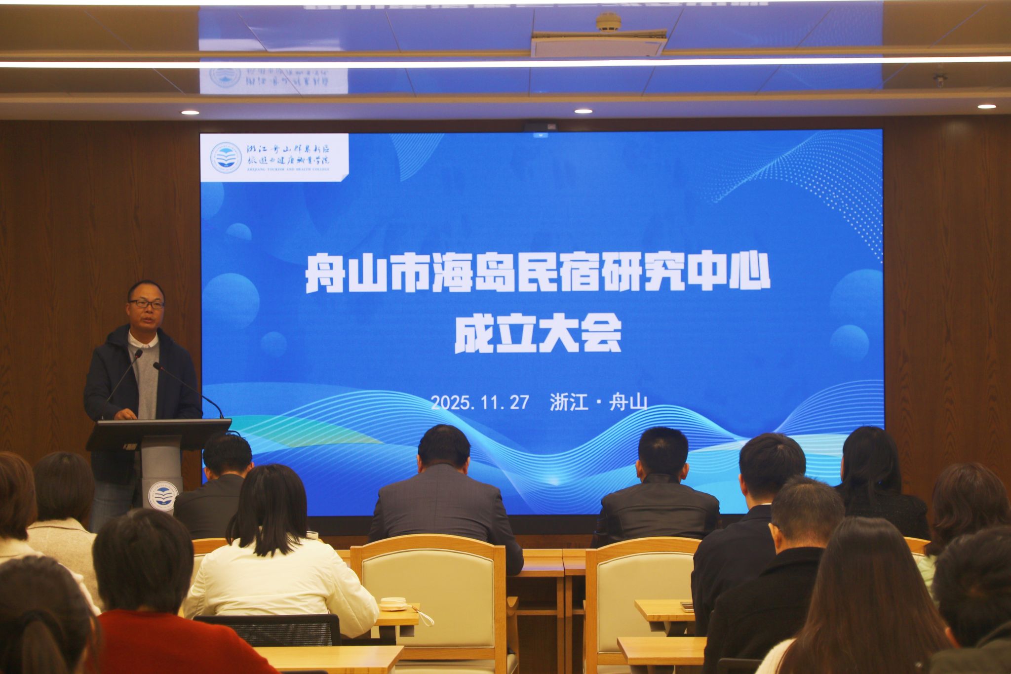 2025-12-0111月27日下午,舟山市海岛民宿研究中心成立大会在我校举行。舟山市社科联副主席林备瑜、樊忠正,校党委委员、副校长孔志华,各学院(中心)负责人及教师代表参加会议。科研与社会服务处处长胡炳波主持会议并宣读批复文件。孔志华副校长致辞。他首先对研究中心的成立表示热烈祝贺,强调中心要立足舟山、服务海岛,打造具有区域特色的产学研融合平台。提出要加强围绕文化赋能、智慧运营、生态可持续、服务标准化四大方向开展研究;主动对接市文旅局、...
