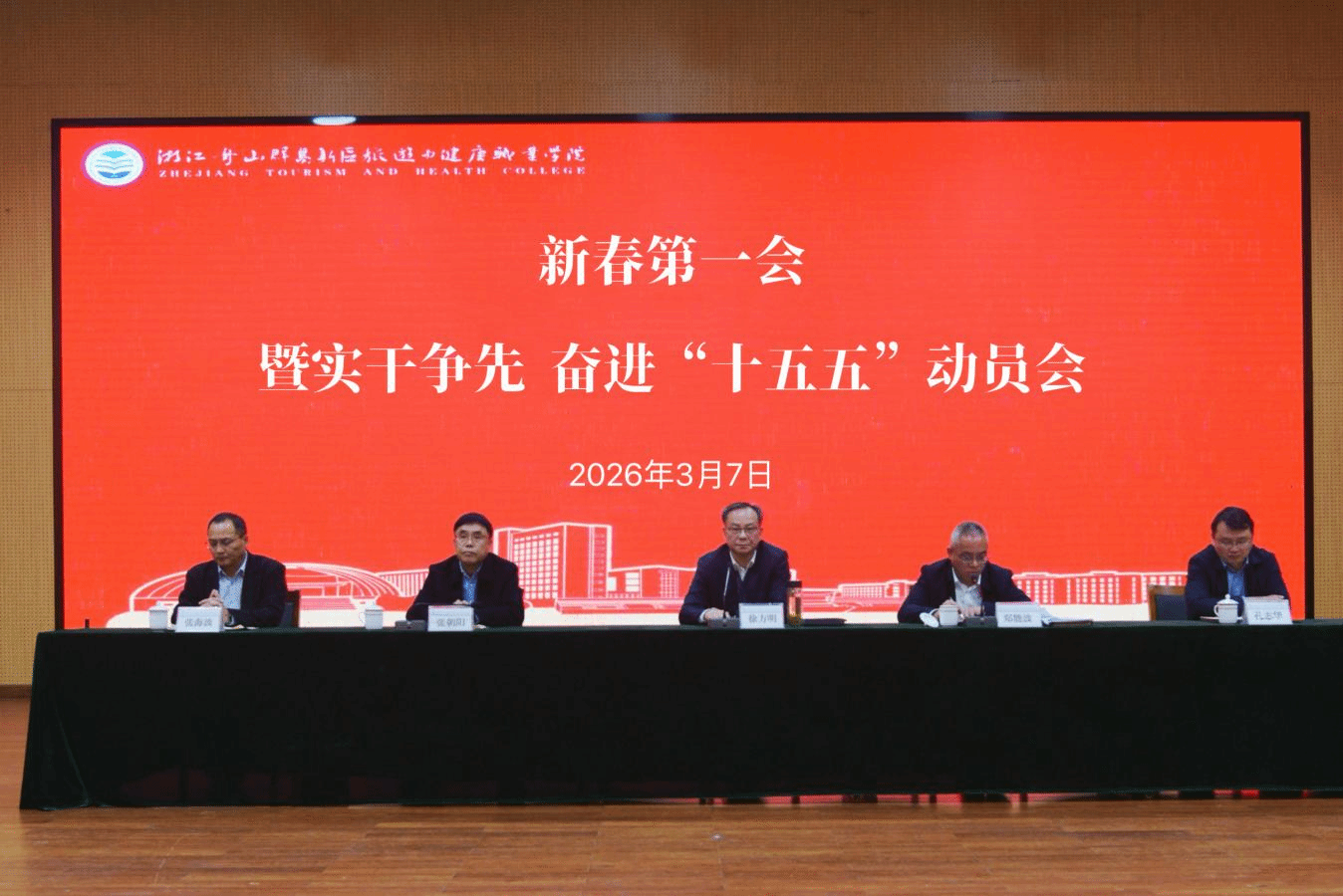2026-03-07春启新程,实干为先。3月7日,我校2026年新春第一会暨“实干争先 奋进‘十五五’”动员会在致远大讲堂隆重举行。校党委书记徐方明出席会议并讲话,校党委副书记、校长郑能波作工作部署。校党政领导班子成员、全体中层干部及教职工参加大会。会议表彰了学校2025年度考核优秀单位及个人,号召全校各单位和全体师生以先进为榜样,见贤思齐、比学赶超,形成干事创业、实干争先的浓厚氛围。郑能波校长围绕全年工作目标,学校将重点推进十二项核心任务:...