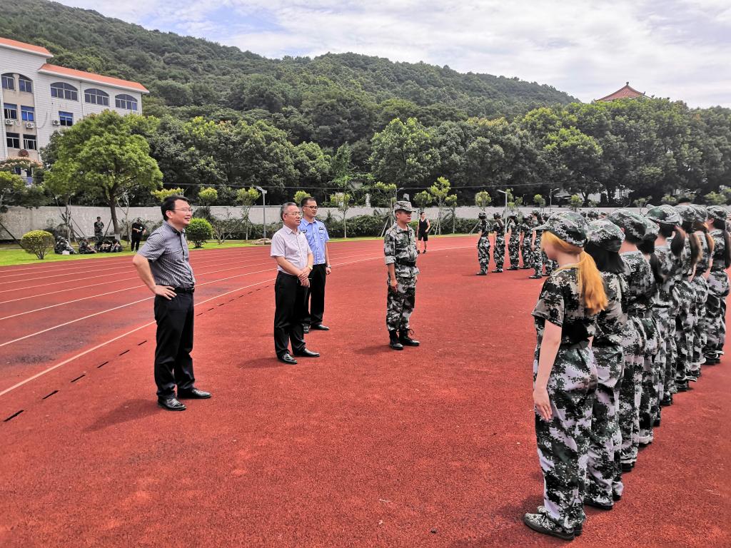 2021年7月8日上午,校长郑能波、副校长孔志华前往军训场地,亲切看望、慰问承训教官和军训学生,了解军训情况。