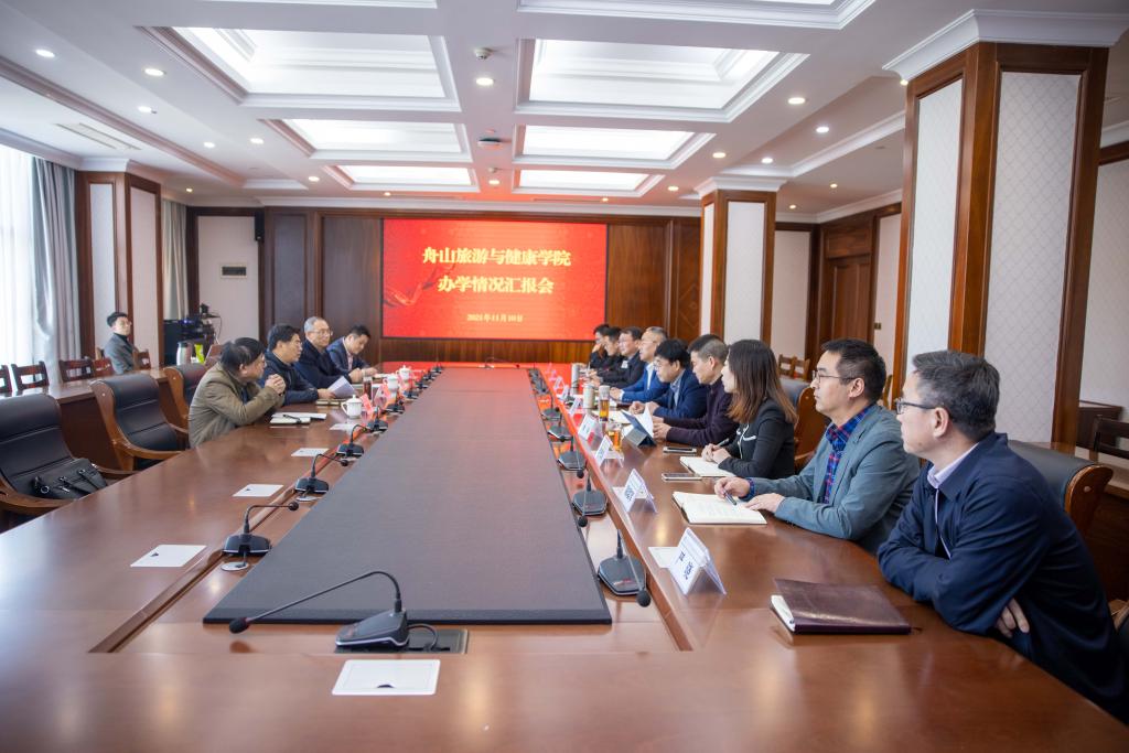钱军副主任一行先后考察了舟山航空培训中心(波音合作机构)、健康学院专业实训室、校史展示厅,随后与在校校领导和相关部门负责人进行了座谈交流。座谈会上,郑能波校长首先对钱军主任一行表示热烈欢迎,并从办学概况、近年来工作开展和取得的成绩、“十四五”发展、目前存在的困难问题及建议等情况进行了汇报。钱军对我校近年来办学所取得的成绩,给予了充分肯定和认同,认为学校在办学时间短、地理环境偏、专业建设难的条件下,取得现在的突出成绩,实属不容易,这离不开学校领导班子和教职工的辛勤付出。