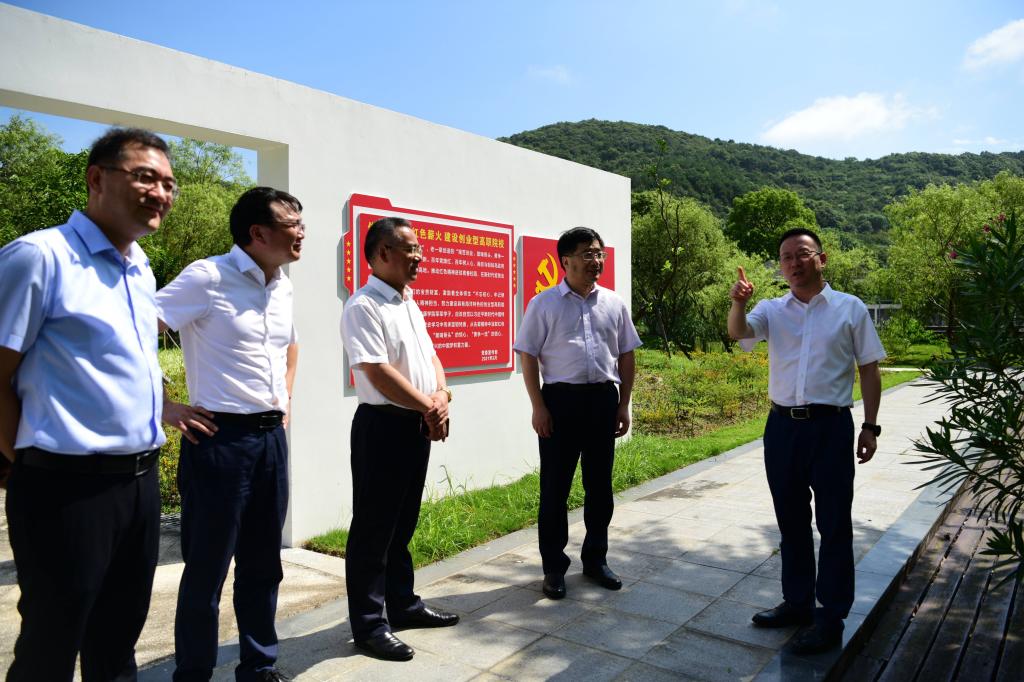 蒲晓斌部长一行首先参观了我校蚂蚁岛精神传承文化墙,肯定了我校将本地优秀红色资源引入校园的举措,希望全校师生以“艰苦创业、敢啃骨头、勇争一流”的蚂蚁岛精神为引领,把党史学习成效转化为每一位老师、每一个学生的工作热情和学习热情。