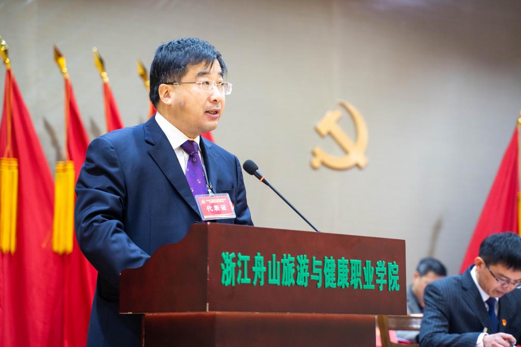 2021年1月16日上午,全体师生热切关注的中国共产党浙江舟山群岛新区旅游与健康职业学院第一次党员大会在致远报告厅隆重开幕。市教育局党委书记陈海波、市委组织部干部二处处长刘波同志出席开幕式。校党委书记姚奇富作题为《勇担新时代使命 聚力高质量发展 为建设具有海洋特色的创业型高职院校而奋斗》的党委工作报告(以下简称《报告》),党委副书记、校长郑能波主持会议,党委领导班子成员及其他主席团成员在主席台就座。