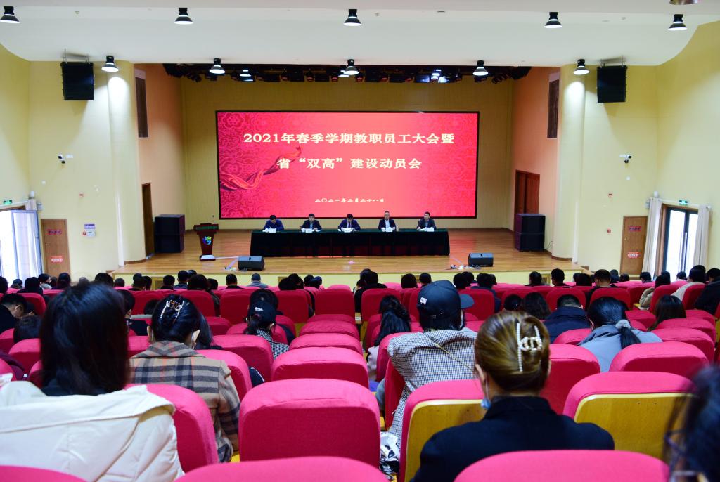 2021年2月28日,我校在致远大讲堂召开全体教职员工大会暨“省双高建设”动员会,校领导及全体教职员工参加会议,会议由副校长张朝阳主持。