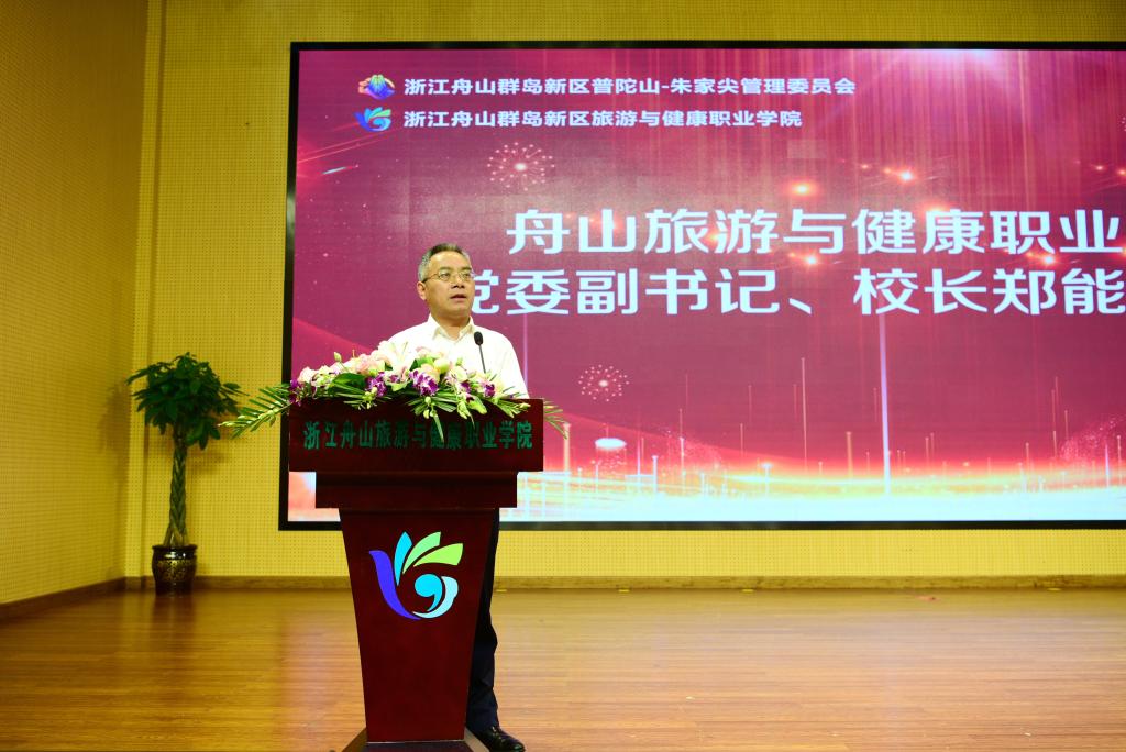 郑能波校长代表学校致辞。郑校长首先对关心支持我校建设发展的普-朱管委会各级领导和各界朋友表示衷心的感谢,并指出服务经济社会发展是高职院校的重要职责所在,我们讲始终以服务地方为使命担当,在双方原有合作基础深化更多实质性内容,同时也期待能取得实实在在的成效。