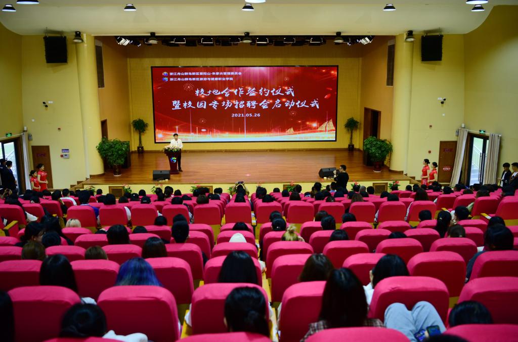 签约仪式结束后,2021年度普朱功能区舟旅健院校园专场招聘会在我校体艺馆正式启动,我校千余名学生代参与招聘。