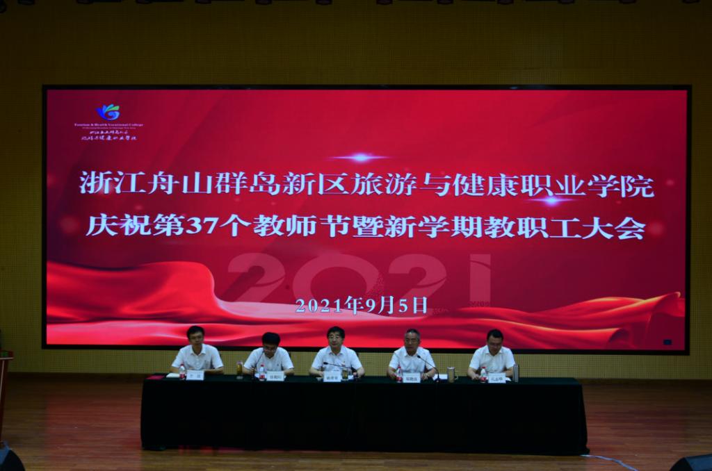 2021年9月5日下午,在全国第37个教师节来临之际,学校召开主题为“赓续百年初心,担当育人使命”的教师节庆祝表彰大会暨新学期教职工大会。校党委书记姚奇富、校长郑能波、副校长张朝阳、副校长孔志华、纪委书记方波出席会议,全体教职工参加会议。