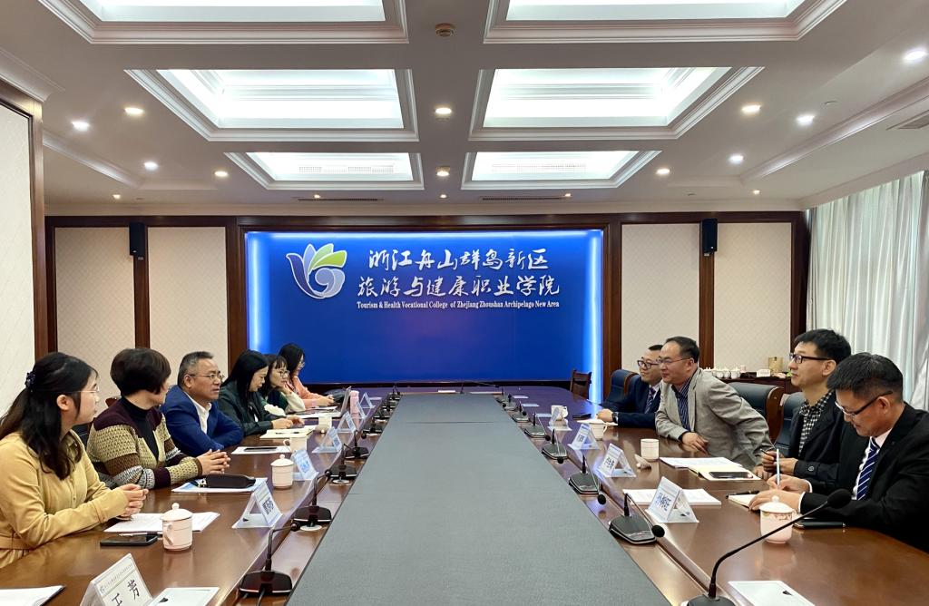 2020年11月15日,内蒙古商贸职业学院院长肖彦辉、商务管理系主任卢生奇等一行4人来校,就护理健康相关专业设置、专业师资配备、专业实训基地建设、有关高职院校办学经验等方面工作考察交流。