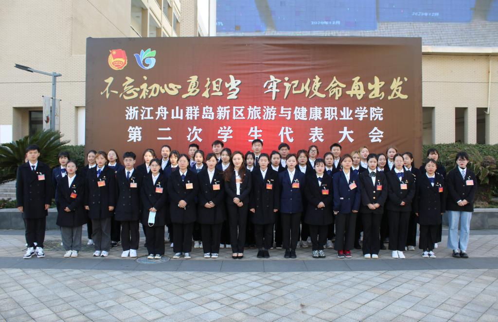 2020年12月16日,浙江舟山群岛新区旅游与健康职业学院第二次学生代表大会在明德楼107教室隆重召开,校党委委员、副校长孔志华,学工部副部长团委负责人乐优捷,浙江舟山群岛新区学生联合会执行主席黄江淮,浙江国际海运职业技术学院学生会执行主席戴泽博,校团委副书记兼大会秘书长王珊珊,校团委干事兼大会副秘书长陈艺璇,各二级学院团委书记和101名学代会代表出席会议。