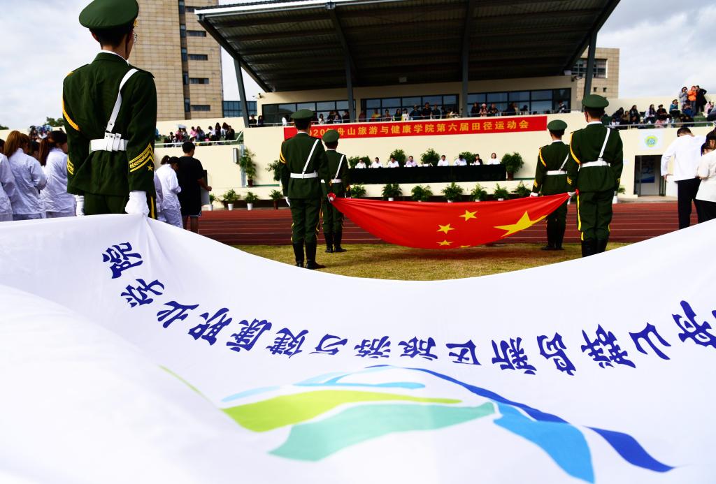 田径场彩旗飘扬,运动健儿们阔步入场。郑能波校长致辞,他以《夺冠》的女排精神,勉励广大同学通过运动让体魄得以强健、人格得以健全、斗志得以激发,用青春拥抱梦想,挑战自我,奋力拼搏!姚奇富书记宣布浙江舟山群岛新区旅游与健康职业学院第六届田径运动会正式开幕!