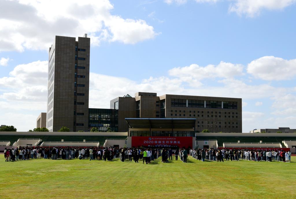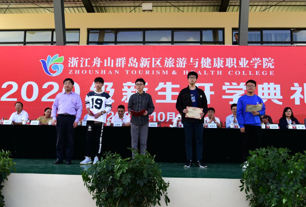 2020年10月14日下午,2020级新生开学典礼在学校田径场隆重举行,校党委书记姚奇富为新生奖学金一等奖获得者颁奖,校长郑能波讲话。大会由副校长孔志华主持,校领导王旭光、张朝阳、方波和各有关部门、各学院负责人,班主任、辅导员及全体2020级新生参加典礼。