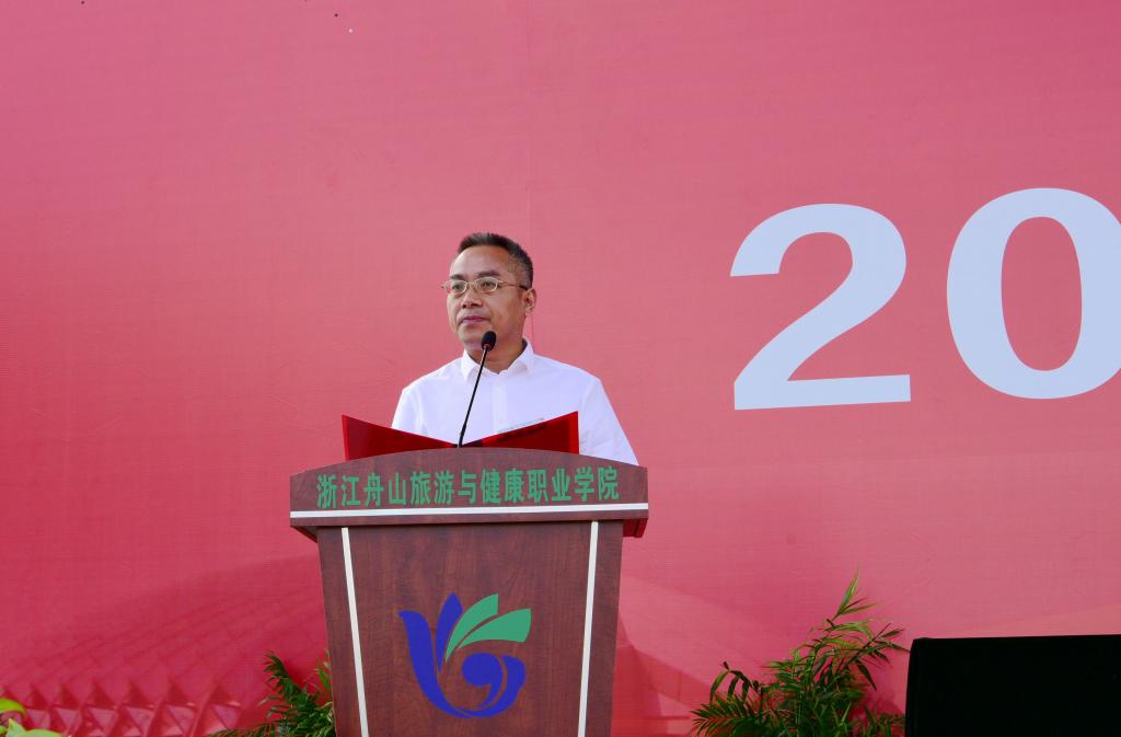 郑能波校长在致辞中,首先代表学校对新同学表示最热烈的欢迎,祝福新同学开启人生的新篇章。郑校长指出,新冠疫情的特殊之年,在党中央的坚强领导下,我们众志成城坚决打赢抗疫战,我们何其幸运,生在伟大的祖国,与国家和民族同风雨、共成长。他提出三点希望:一是心怀家国情怀,坚定爱国信念。希望同学们能将这份情怀牢记、传承,自觉树立远大理想,把握时代脉搏,把个人前途融入民族命运,将个人奋斗与国家发展同频共振,让个人价值在民族复兴的伟大事业中熠熠生辉。二是要以勤奋为伴,不忘初心使命。希望大家有充分的思想准备,以饱满的热情迎接挑战,像女排姑娘们一样艰苦奋斗,奋发向上,顽强拼搏,发出属于你们的时代强音。三是谨记精神成人,涵养道德品行。希望同学们以诚信为本,言行一致,团结互助,珍惜缘分,传承大爱,乐于奉献,让品德之光照亮人生前进的大道。