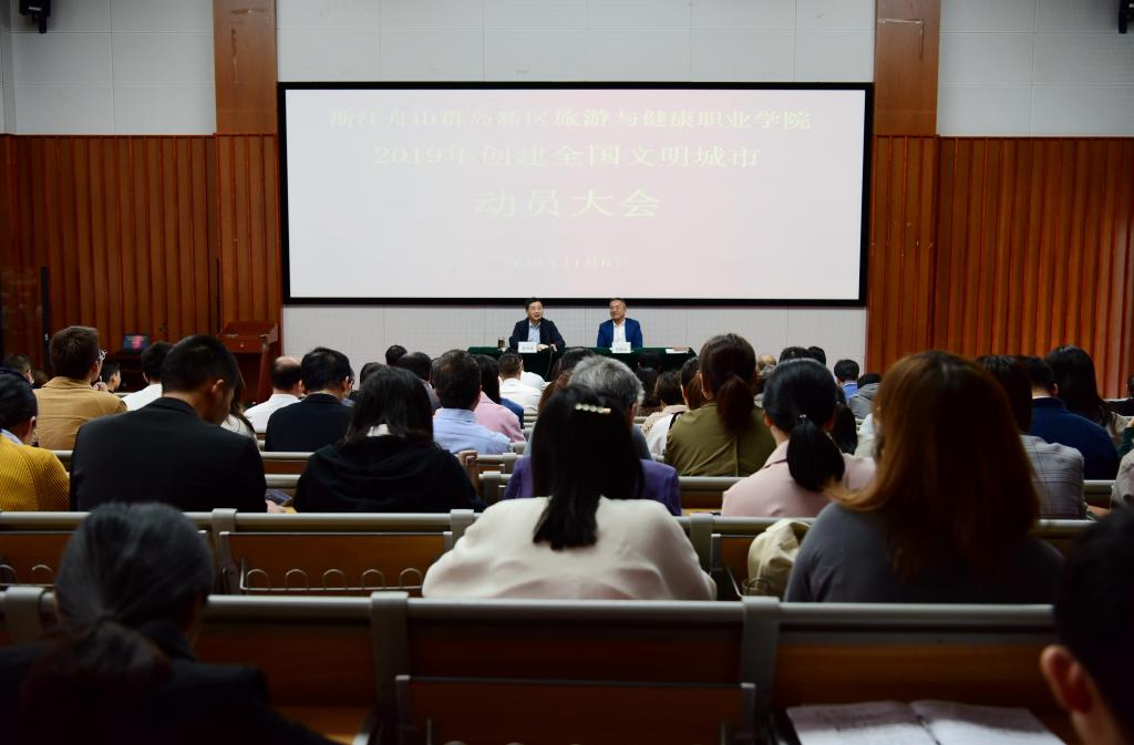 动员会上,郑能波校长指出,全国文明城市是反映城市整体文明水平的综合性荣誉称号,是目前国内城市综合类评比中的最高荣誉,也是最具价值的城市品牌。要求全校师生的认识再提高,责任再强化,工作再落实,全力以赴做好学校全国文明城市创建工作,绝不失分,绝不拉全市的后退。