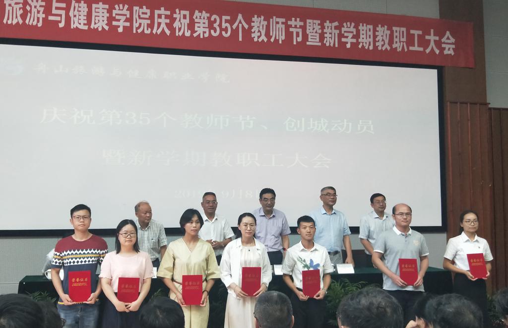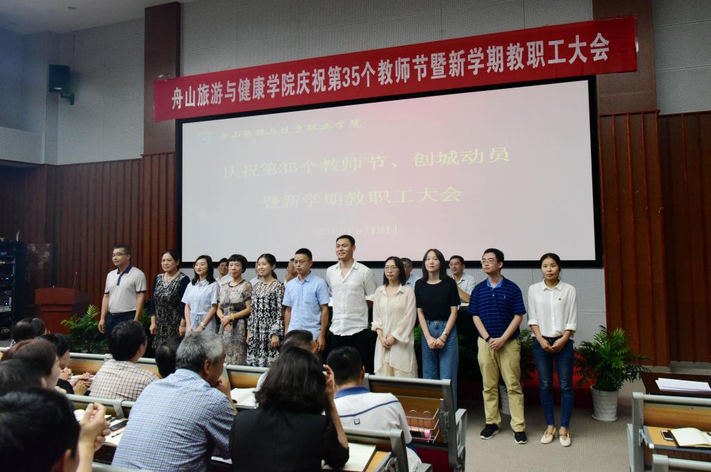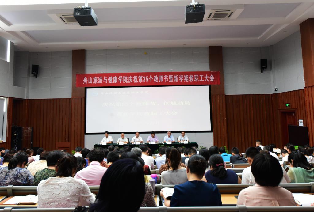 2019年9月8日下午,在第35个教师节到来之际,我校隆重召开庆祝第35个教师节、创城动员暨新学期教职工大会。会议旨在落实好庆祝新中国七十华诞、弘扬新时代尊师风尚的主题,营造尊师重教的浓厚氛围,激励广大教师和教育工作者不忘育人初心、牢记办学使命,为党育人、为国育才。校党委副书记、校长郑能波讲话,会议由校党委副书记王旭光主持。校领导何岳成、杨建华、陈爱国、俞志良出席会议,全体教职员工参加会议。