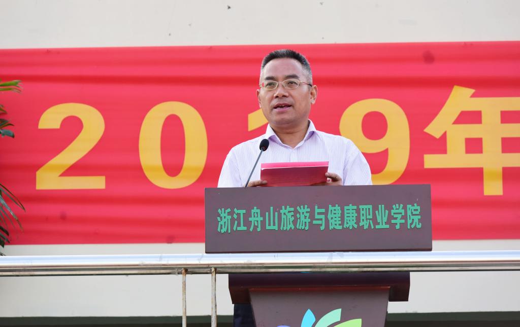 开幕式上,田径场彩旗飘扬,运动健儿们整齐列队。郑能波校长宣布浙江舟山群岛新区旅游与健康职业学院第五届田径运动会正式开幕!