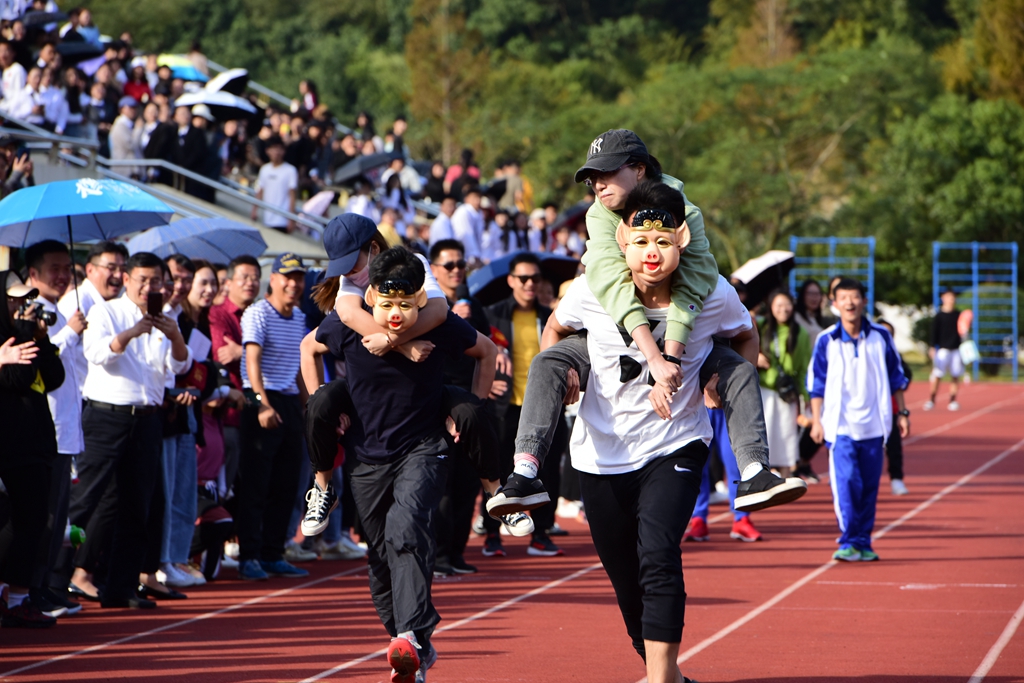 赛程尾段的教职工趣味运动会项目丰富,囊括50米迎面抱球接力、八戒娶媳妇、穿衣接力、两人三腿协作跑,全体教职工以饱满的精神面貌参加竞赛,发扬团结协作风格,凝聚教职工力量。最终,第四工会、第六工会摘得第一名,第五工会获得第三名,第一工会、第七工会获得第四名。