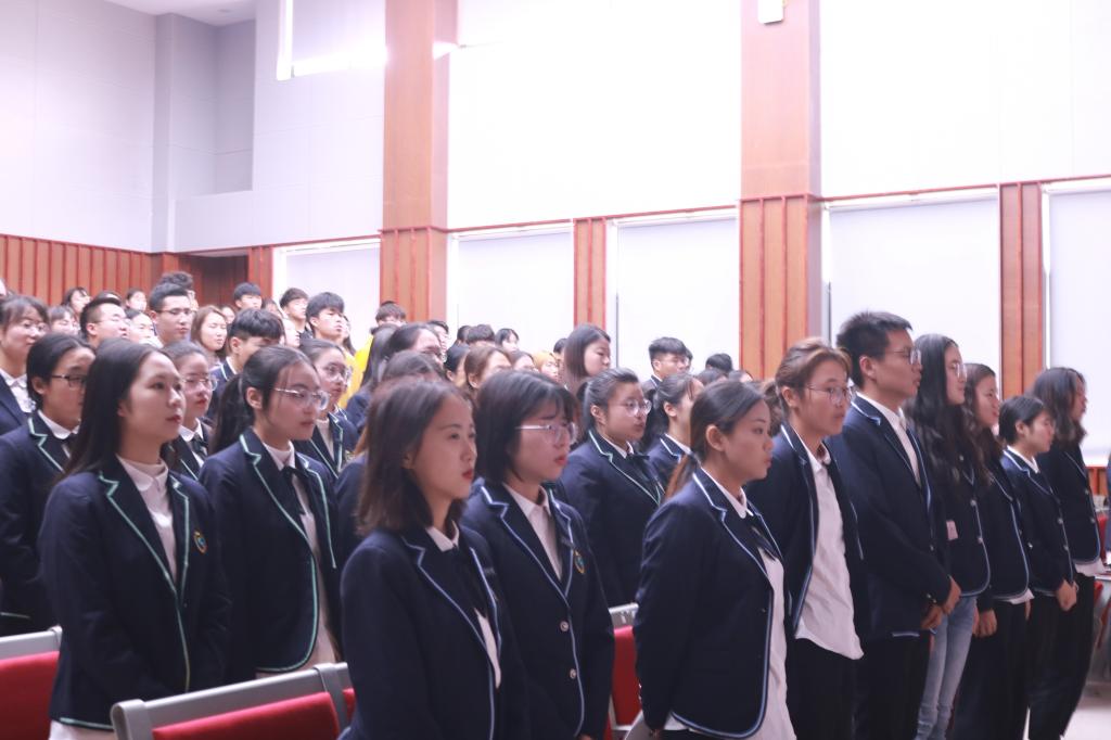 194名学员嘹亮的国歌声拉开了典礼帷幕。首先,健康分院党总支书记杨奇美宣读了组织机构。接着,第六期学员代表芮瑜繁上台进行了发言,她表达了上好本次业余党校的决心,并号召大家肩负使命努力学习。
