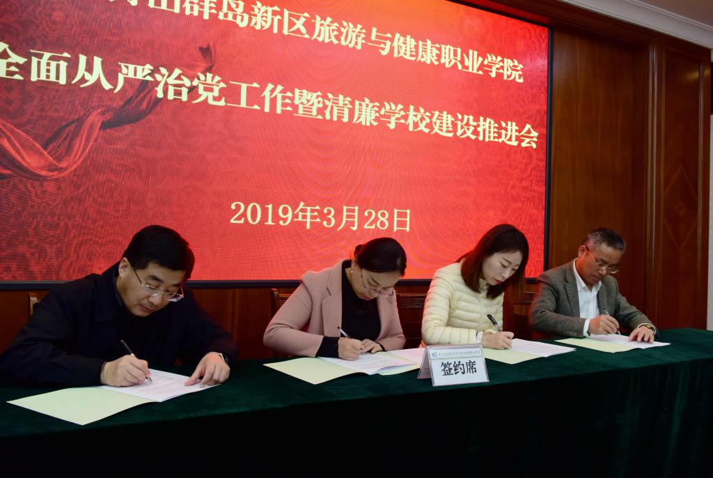 会议由学校党委副书记、院长郑能波主持。会议组织观看《清廉浙江·你我同行》等视频资料,认真学习了十九届中央纪委三次全会精神、学校2019年党风廉政建设工作要点,现场签订党风廉政建设责任书。组织人事处、学生工作部、公共教学部在会上作表态发言。