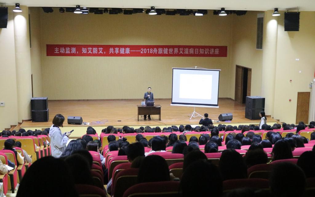 今年是第30个世界艾滋病日。12月3日晚上6点,由校红十字会、医务室主办的以“主动监测,知艾防艾,共享健康”为主题的2018舟旅健世界艾滋病日知识讲座在报告厅举行。本次讲座由普陀疾控中心防艾科科长郑朝阳主讲,我校四百多名学生共同听讲。