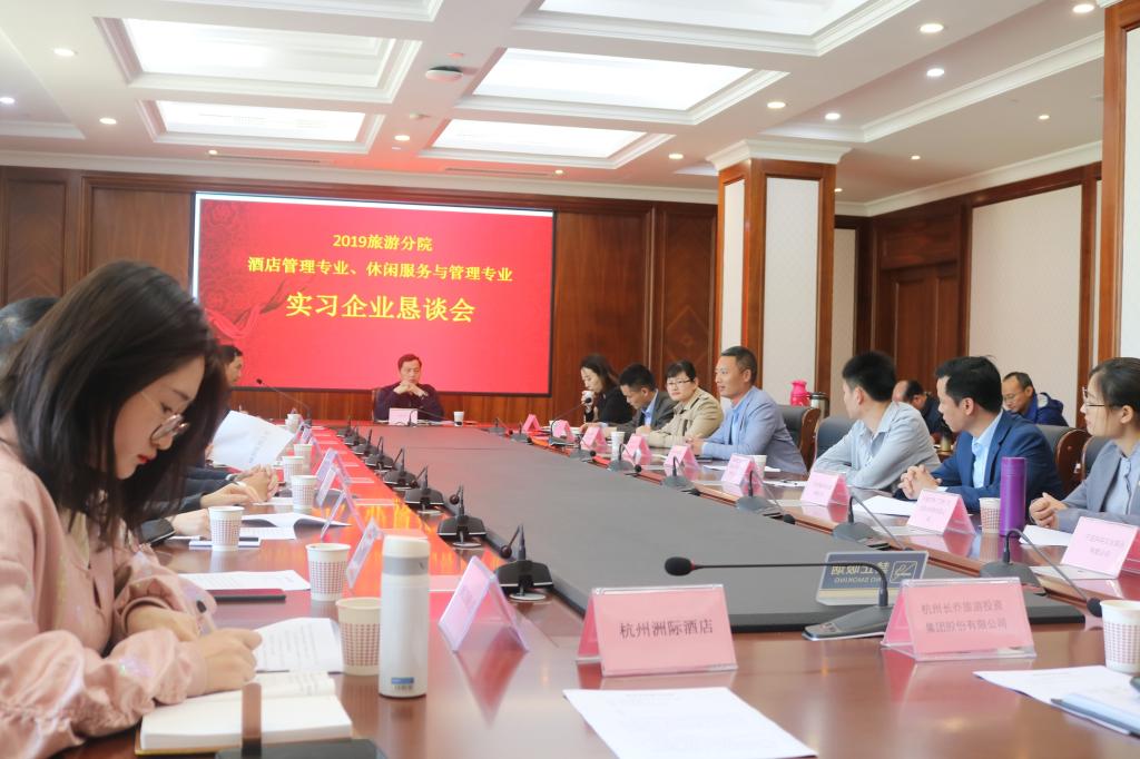 恰逢职业教育周,2019年5月7日、8日下午,旅游分院在行政楼多媒体会议室召开了校企实习恳谈会。旅游分院院长侯明贤、副院长邬玮玮、党总支副书记安桃艳,分院导游、酒店管理和休闲服务与管理专业的教研室主任共同参加,26家合作企业的31位代表作为嘉宾出席。