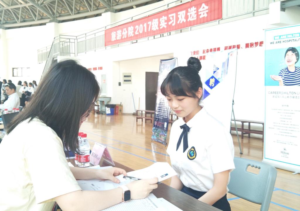5月22日下午,我校旅游分院2017级学生实习双选会在体艺馆举办,来自旅游分院17级的两百余名学生和54家企业共同参加了本次双选会。