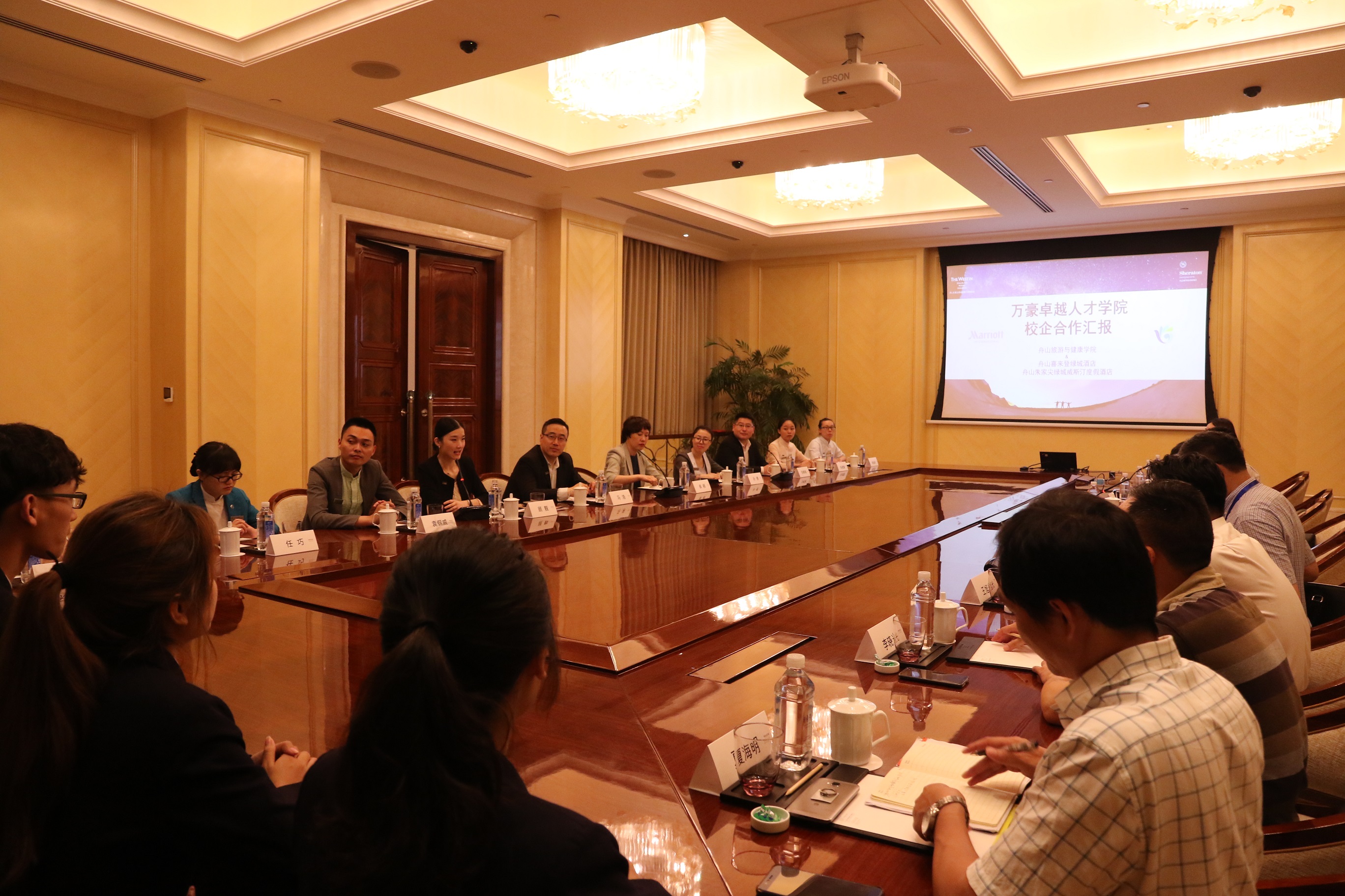 5日下午,教学巡查专家组在校党委副书记王旭光和教务处、旅游分院负责人的陪同下,考察了学校校外实训基地——朱家尖绿城威斯汀度假酒店,听取了我校万豪卓越人才学院校企合作成果汇报,并对校企合作订单班学生进行了座谈。