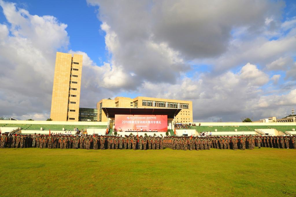 2018年9月28日上午7时,2018级新生军训阅兵暨开学典礼在学校田径场隆重举行。校党委书记陈仕俊宣布阅兵开始,党委副书记、院长郑能波致辞,党委副书记王旭光主持大会,海防旅副营长吴疆和党委委员、副院长何岳成出席会议并颁奖,党委委员、副院长陈爱国宣读表彰文件。新生军训教官和各有关部门、各分院(系、部)负责人,班主任、辅导员及全体2018级新生参加典礼。