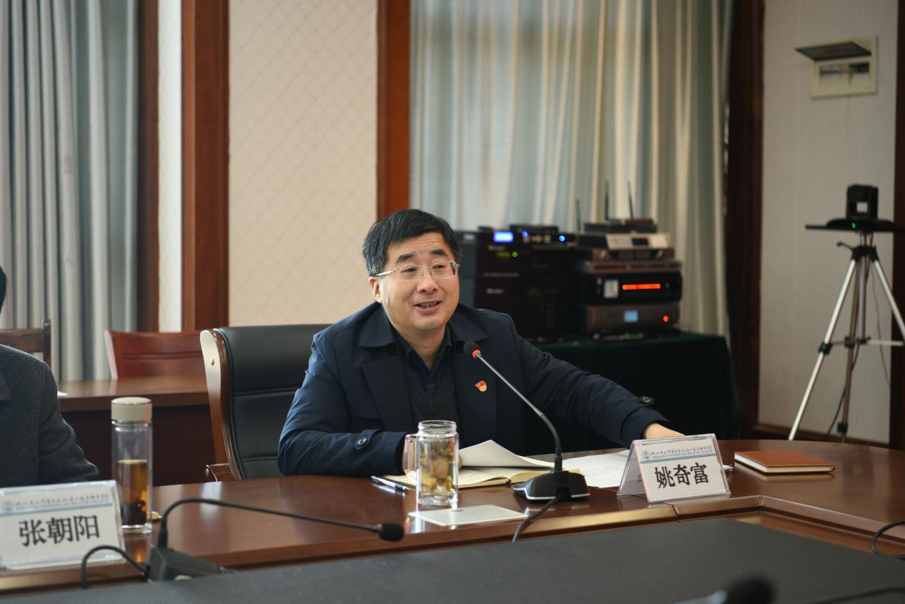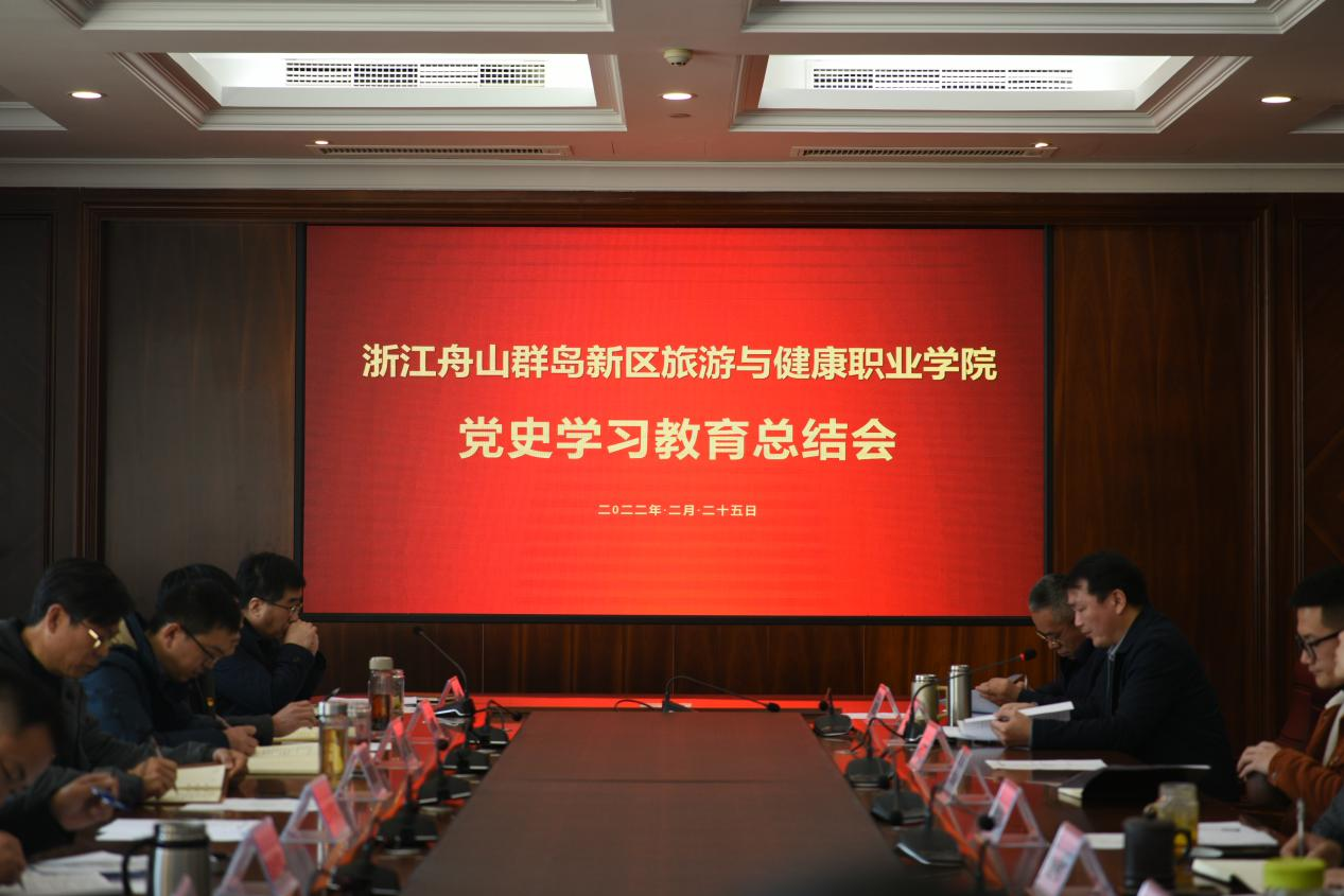 姚奇富指出,党史学习教育开展以来,我校认真贯彻落实党中央决策部署,紧扣学习贯彻习近平新时代中国特色社会主义思想这条主线,按照学史明理、学史增信、学史崇德、学史力行的要求。一是构建了常态长效机制,充分发挥基层党组织的积极性、主动性和创造性,巩固拓展党史学习教育成果,完善习近平新时代中国特色社会主义思想学习机制,统筹推进、查漏补缺、结合实际,以更强的责任感和紧迫感推进党史学习教育常态化长效化建设,营造党史学习教育常态化长效化开展的浓厚氛围。二是做到了明理增信赓续红色血脉,切实增强党员的自豪感和党组织的感召力、向心力,扎实推进党史学习教育,使党的组织体系更加完善,创新传承“蚂蚁岛精神”进校园,进一步树立爱党爱国爱社会主义的情怀和艰苦创业的奋斗精神。三是做到了崇德力行推动学校发展,扎实推进高质量专业体系建设,着力破解人才工作难题,并构建了高质量的服务保障体系。四是始终把党的政治建设摆在首位,始终践行“师生为本”的发展思想,始终坚持走高质量发展道路,始终坚持理论武装,以更强的责任感和紧迫感推进党史学习教育常态化长效化建设,营造党史学习教育常态化长效化开展的浓厚氛围。五是做到了实干担当,持之以恒推进“双高”建设。对标省委、市委要求和舟山市第八次党代会精神以及学校年度重点工作,咬住“双高”建设目标不放松,保质保量完成2022年各项既定工作任务,将党史学习成果转化为学校高质量发展的不竭动力,团结和动员全体师生,砥砺奋进、创新创业,以实际行动和优异成绩迎接党的二十大胜利召开。