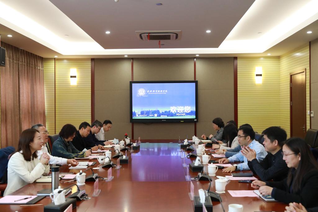 在座谈交流中,郑能波校长对两个院校近年取得的成绩高度评价,并介绍了我校的基本情况与办学特色。双方围绕中外合作办学、“双高”项目建设、年度考核与绩效分配、教学制度建设、健康护理类专业及实训室建设等工作进行了深入交流探讨。各对口单位的负责同志也就本单位的基本情况和工作经验进行了广泛交流。