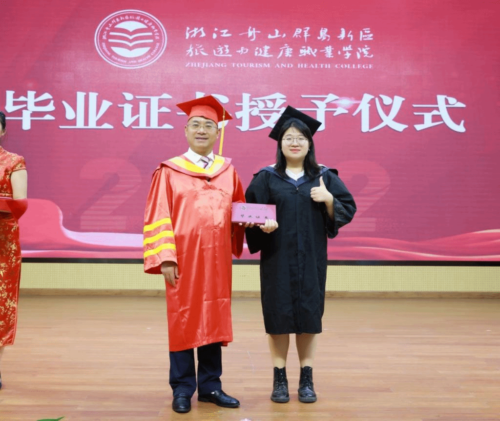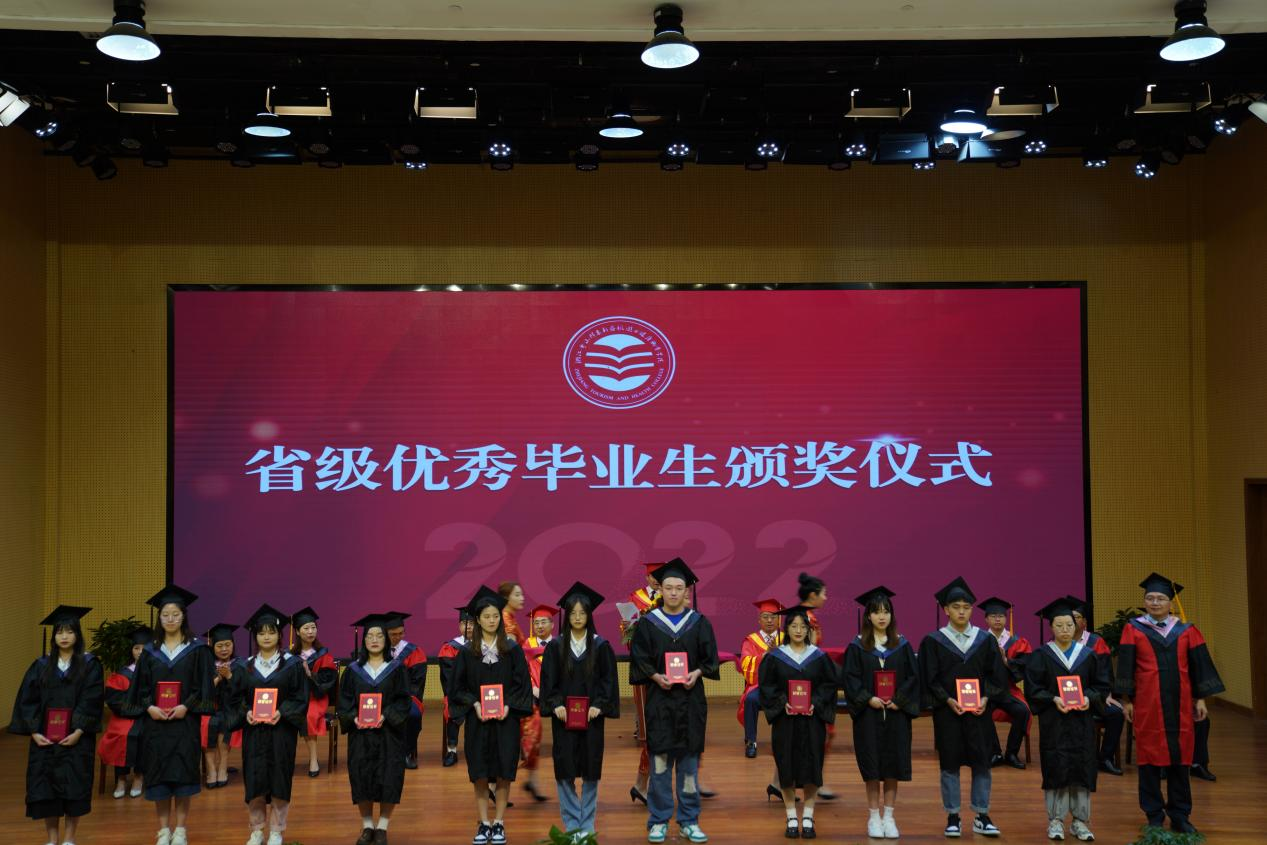 下午两点,毕业典礼在庄严的国歌声中拉开帷幕。李涛副校长宣读《浙江省教育厅办公室关于公布2022届浙江省普通高等学校优秀毕业生名单的通知》和《浙江舟山群岛新区旅游与健康职业学院关于表彰学校2022届校级优秀毕业生的决定》,共有42名省优秀毕业生、172名校优秀毕业生获得表彰。