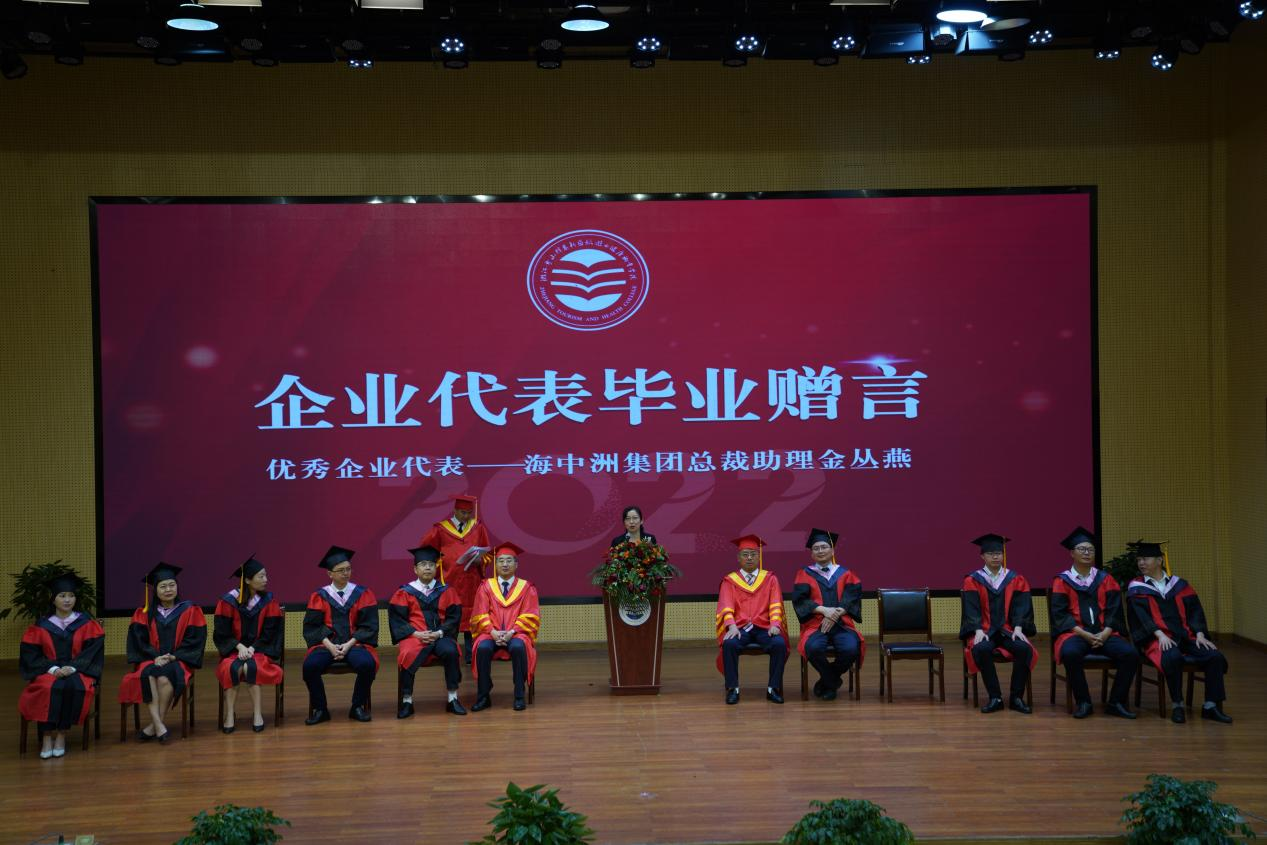 海中洲集团总裁助理金丛燕作为校企合作企业代表赠言,她通过分享自己的求学生涯和工作经历,勉励同学们保持一颗求知的进取心,保持一颗持久的恒心,让生活过得充实而有意义,毕业之后继续奋力书写精彩的人生。