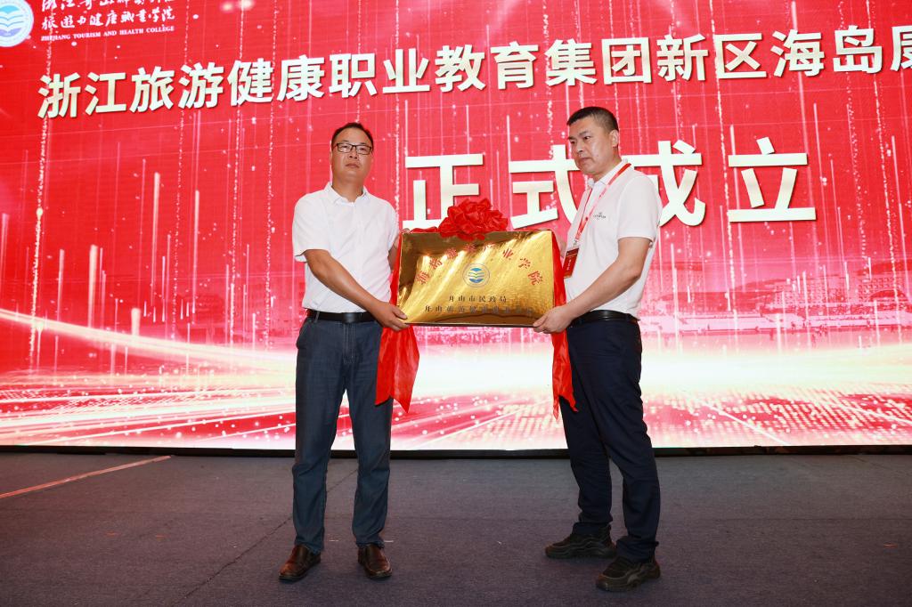 成立大会上,举行了舟山市职业教育研究中心揭牌,新区文旅产业学院和海岛康养产业学院授牌,学校与定海工业园区管委会、普陀区展茅街道办事处、普陀区大健康产业平台工作组、沈家门渔港小镇“一院一镇”校地合作签约,学校与宁波城市职业技术学院、宁波卫生职业技术学院甬舟旅游健康类高职院校合作签约,与舟山职业技术学校、舟山旅游商贸学校旅游健康类中高职院校合作签约,以实现行业内资源共享、产业间密切合作、区域内共生联动、区域间优势互补,促进教育链、人才链与产业链、创新链的有机衔接,提高职业技术教育质量、扩大学生就业创业、推进经济转型升级、培育经济发展新动能。
