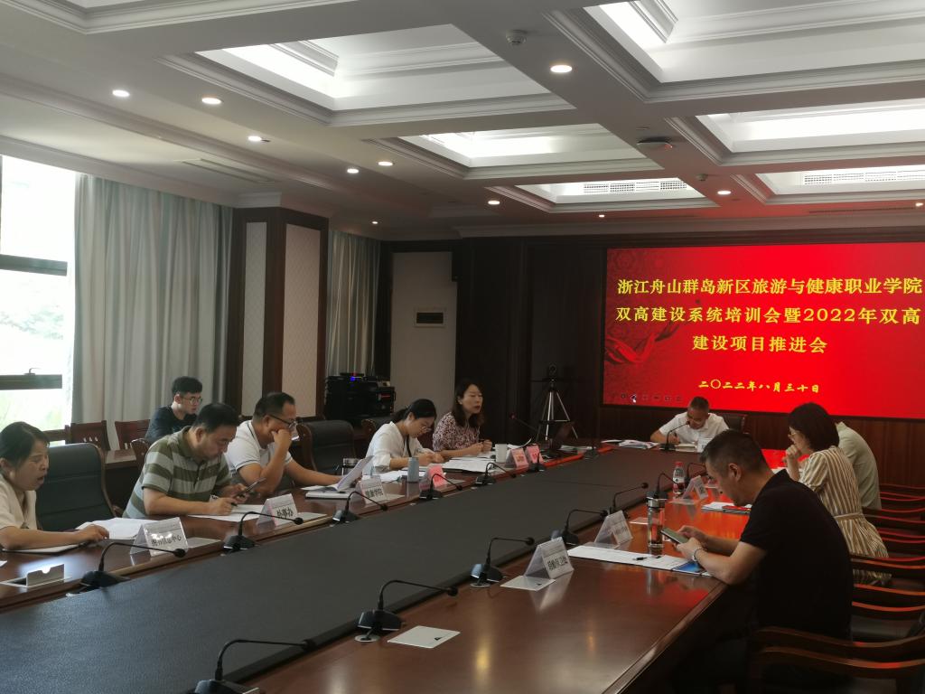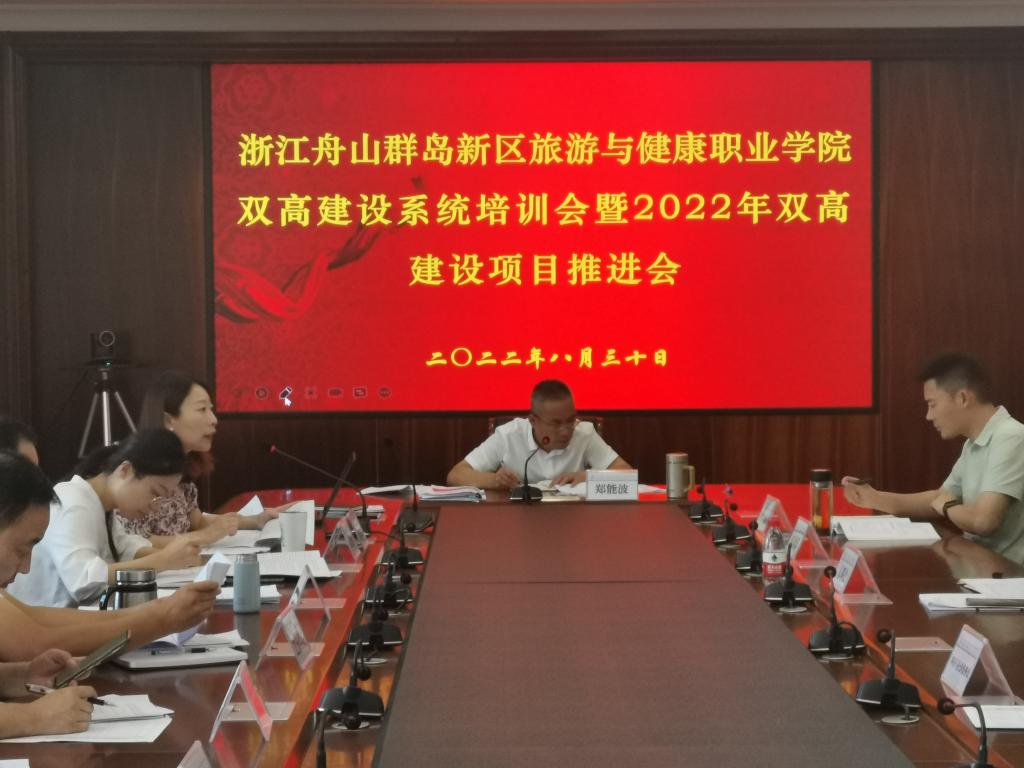 为充分利用信息化手段推进我校“双高”建设工作,积累项目经验与成果, 8月30日下午,学校召开双高建设系统培训会暨2022年双高建设项目推进会。校长郑能波、双高办副主任邬玮玮,各职能部门负责人、专业群负责人及相关工作人员参加会议,会议由校长郑能波主持。