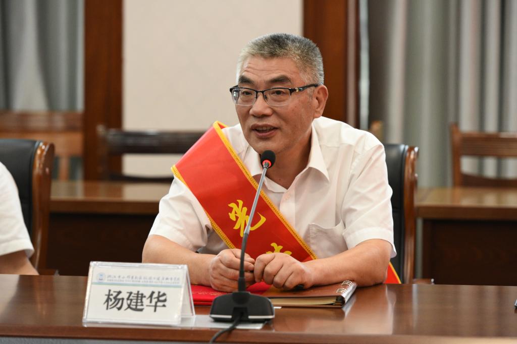 9月2日,学校举行杨建华副院长荣休仪式,校领导班子、退居二线校领导以及办公室、组织部负责人参加。校党委书记姚奇富为荣休的杨建华副院长颁发退休证书和绶带,郑能波院长代表学校感谢杨建华副院长为学校教育事业发展奉献的青春与才智。杨建华副院长深情回顾了自己四十年来在教书育人一线的奋斗历程,感慨学校自筹建以来发生的巨大变化和成绩,表达了对学校的感激之情,表示退休后将继续关注支持学校的发展,持续发挥余热,以实际行动为学校各项事业的发展贡献力量。