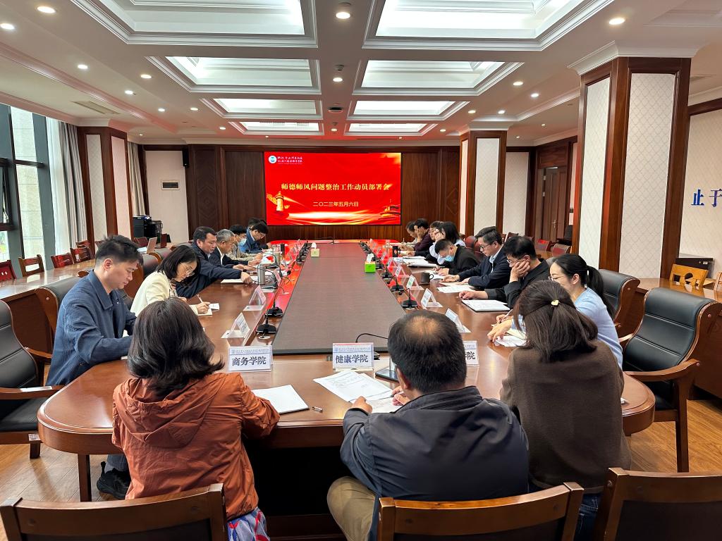 5月6日上午,我校召开师德师风问题整治工作动员部署会。校长郑能波出席会议并讲话,在校的校领导班子成员、各学院(部)、部门主要负责人参加会议。会议由党委委员、副校长孔志华主持。