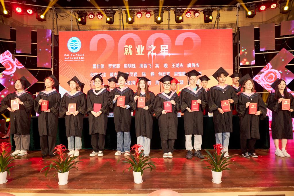 典礼现场宣读了《浙江省教育厅办公室关于公布2023届浙江省普通高等学校优秀毕业生名单的通知》和《浙江舟山群岛新区旅游与健康职业学院关于表彰学校 2023届校级优秀毕业生的决定》,对33名省优秀毕业生、135名校优秀毕业生和学校就业之星进行表彰。