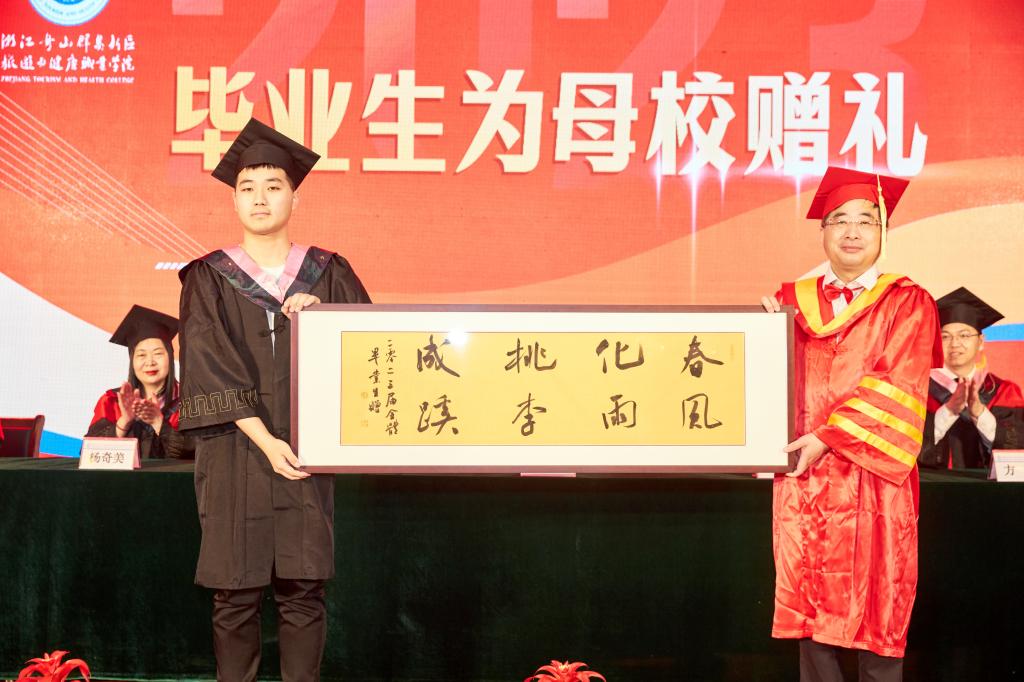 典礼上,校党委书记姚奇富代表学校接受毕业生对母校的赠礼。孔志华副校长为舟山校友会、宁波校友会授旗仪式。