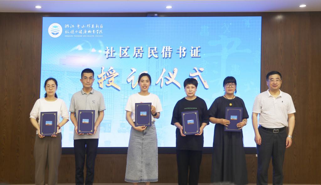 为进一步推进文化资源共享,提升社会服务功能,加强高校文化向周边社区辐射延伸,满足社区居民的阅读、学习需求,校图书馆为社区居民提供图书馆借阅服务,姚奇富书记为朱家尖街道的居民代表颁发了借书证。