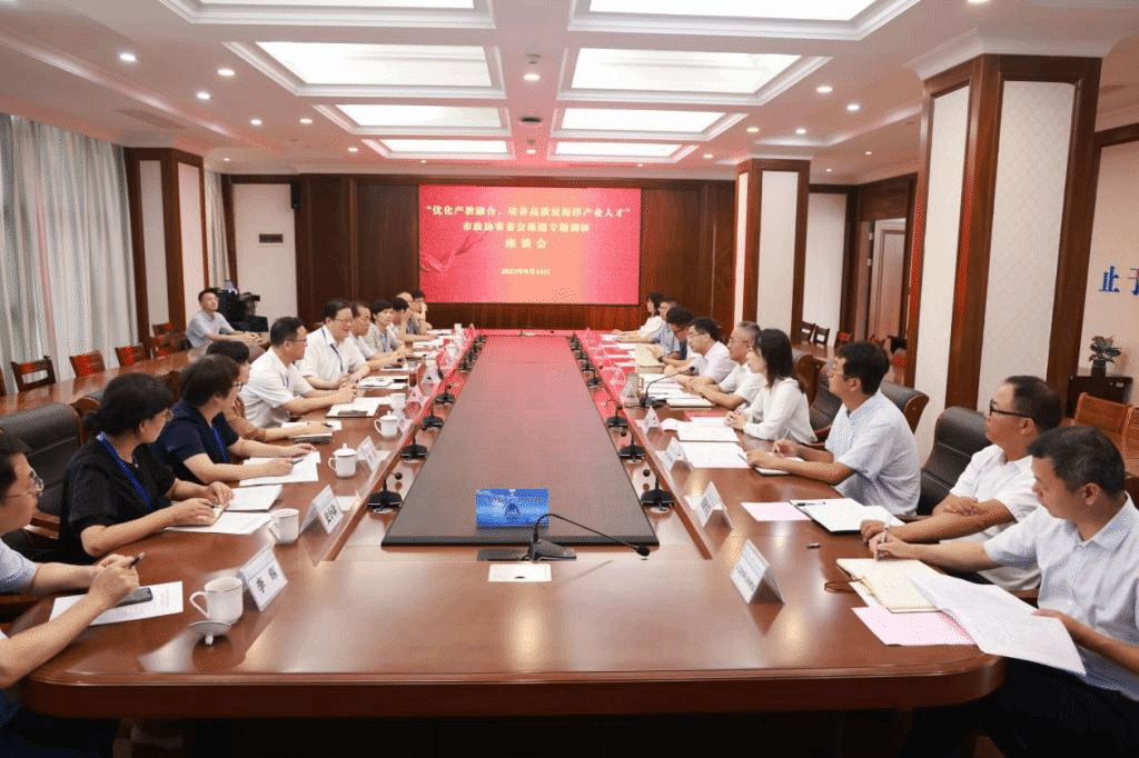 2023年9月14日上午,市政协主席王伟,市政协副主席董文平一行来校开展“优化产教融合,培养高质量海洋产业人才”专题调研工作,参加调研的还有市政协秘书长罗岱生,市政协常委、教科卫体委主任汤赛虹,市政协常委、教科卫体委副主任李莹梅等。我校党委书记姚奇富,党委副书记、校长郑能波以及相关部门负责人陪同调研并座谈。