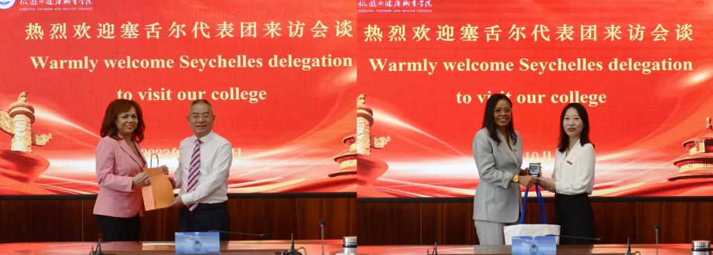 随后,教务处长邬玮玮、旅游学院院长杨奇美、健康学院党总支书记胡炳波与代表团进行了教学及专业交流,探讨学校与塞舌尔高校、旅游相关部门开展合作项目、签署合作备忘录、共建“丝路学院”等建议,并达成初步意向。