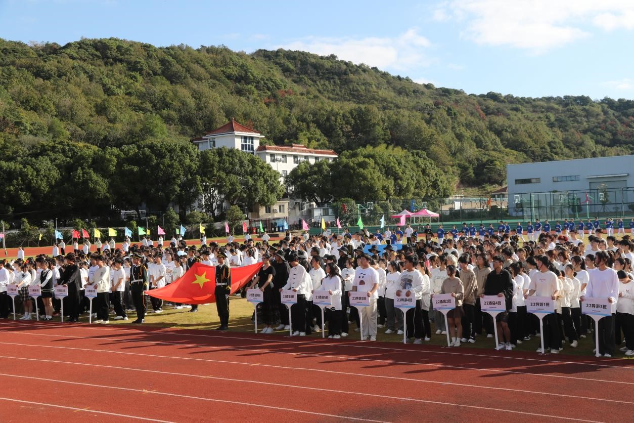 伴随着高亢激昂的《运动员进行曲》,国旗队、校旗队、会旗队、鲜花队、彩旗队以及各个学院的代表队方阵,相继走上了红色的跑道,彰显了舟旅健学子的昂扬姿态。当庄严的国歌奏起,全体师生起立奏唱国歌。