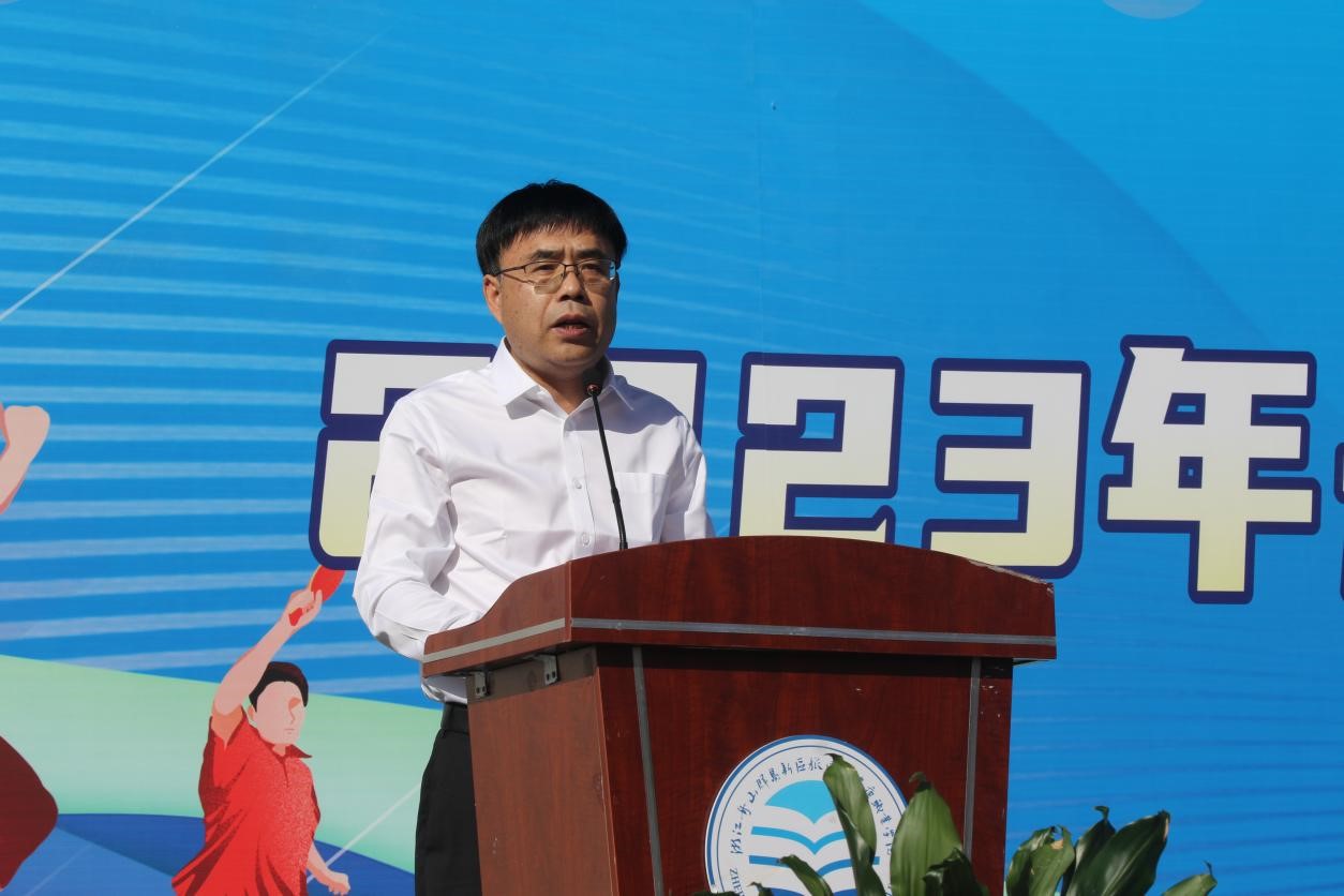 校党委副书记、校长郑能波宣布浙江舟山群岛新区旅游与健康职业学院第九届田径运动会正式开幕。