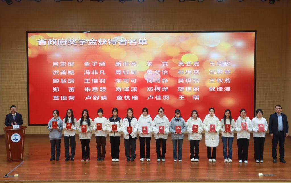 大会在庄严的国歌中拉开帷幕。学生工作部副部长郑永骥宣读了《关于表彰学校2022-2023学年奖学金获得者、先进班级和三好学生、优秀学生干部的决定》。2022-2023学年共评出7个先进班级、185名三好学生、87名优秀学生干部、92名一等奖学金、137名二等奖学金、165名三等奖学金、210名单项奖项金、3名东海奖学金、74名国家励志奖学金、65名省政府奖学金和1名国家奖学金。大会举行了隆重的颁奖仪式,与会领导对获奖学生代表颁发了获奖证书。