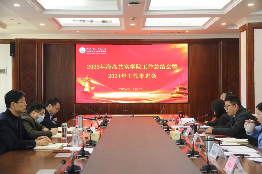 为深入学习贯彻习近平新时代中国特色社会主义思想,忠实践行“八八战略”,进一步做好海岛共富学院工作,1月17日上午,学校在求真楼2楼多媒体会议室召开2023年海岛共富学院工作总结会暨2024年工作推进会。学校党委书记姚奇富,执行院长陈爱国以及各成员单位负责人参会,会议由党委委员、副校长孔志华主持。