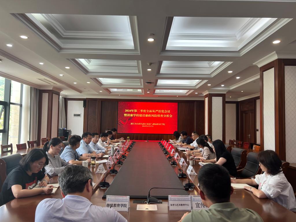 6月17日下午,学校召开第二季度全面从严治党工作会议。本次会议主题为清廉学校建设暨廉政风险分析,校领导班子成员,纪委委员,各学院(中心)、部门负责人参加会议。