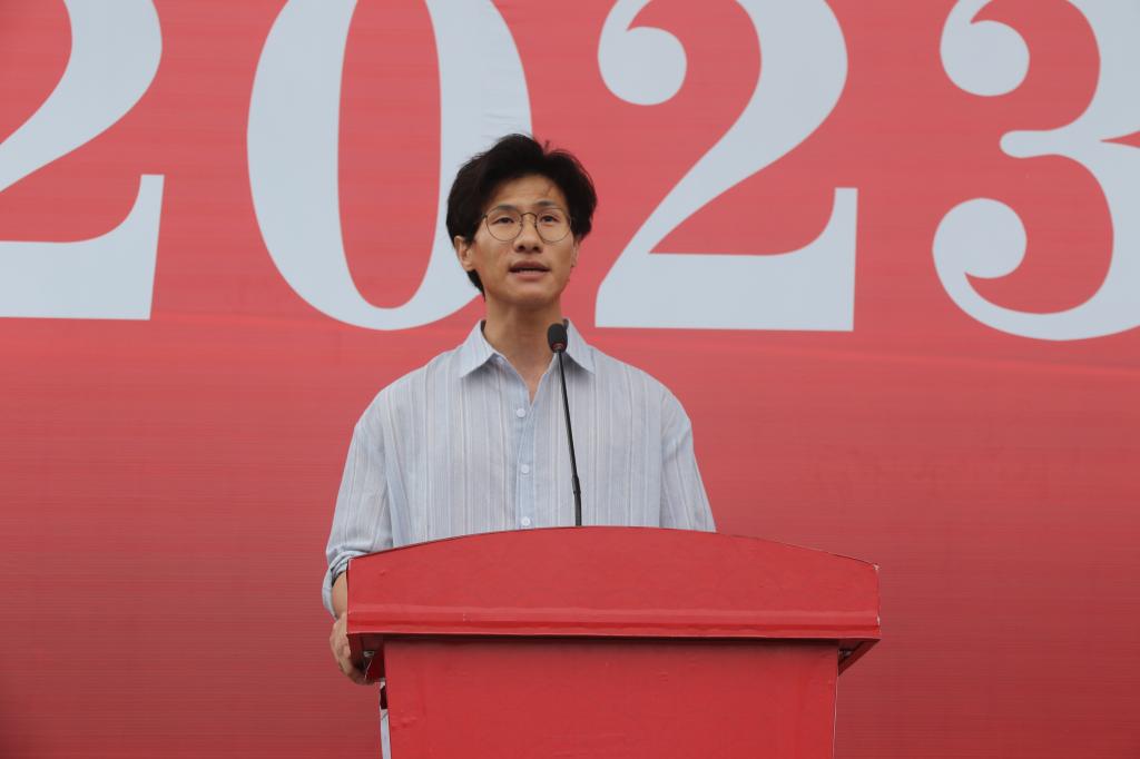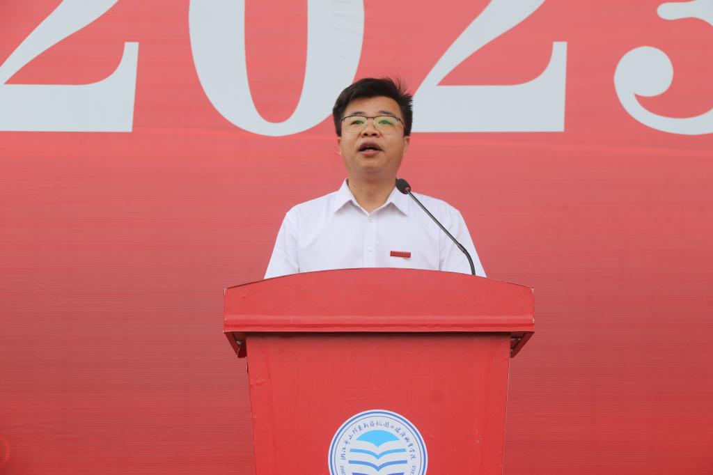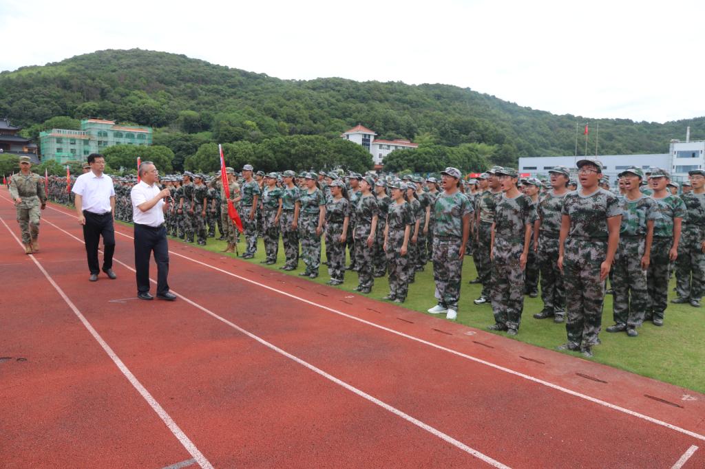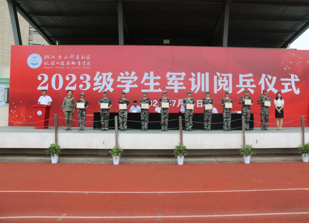 2024年7月15日上午,2023级学生军训阅兵仪式在学校田径场隆重举行。学校党委副书记、校长郑能波,学校党委副书记张朝阳,学校党委委员、纪委书记方波,学校党委委员、副校长黄承,朱家尖街道人武部副部长秦素梅,教务处处长邬玮玮,全体承训教官,各学院副书记、班主任、辅导员及全体参训学生参加了本次仪式。仪式由学工部(人武部)部长乐优捷主持。