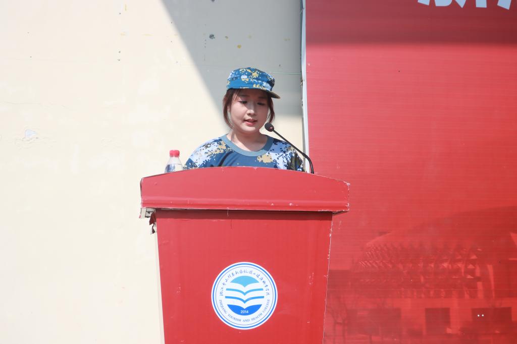 在激昂的国歌声中,鲜艳的五星红旗冉冉升起,全体师生及军训教官肃立,向国旗行注目礼。商务学院李沙沙作为军训学员代表发言,她表示在军训中要服从命令,听从指挥;要苦练基本功,磨练意志;要巩固军训成果,把军训中养成的好习惯、好思想、好作风贯穿到今后的学习工作中。承训教官代表吴浩杰希望同学们军训期间,思想上要高度重视、行动上要雷厉风行;要尊敬老师,尊重教官;要有团队精神。同时他表示将以高度的责任感和专业的军事素养,认真履行教官职责,严格要求学员,帮助同学们顺利完成军训任务。随后,承训教官进行了队列示范表演,动作整齐划一、干净利落,充分地展现出当代军人过硬的军事技能,为同学们树立了良好的学习榜样,激励着他们朝着更高的标准去努力、去奋进。
