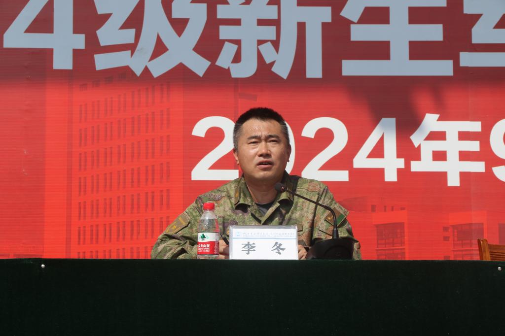 普陀区人武部政工科李冬科长发表讲话。他表示,军训是一场历练,也是一次成长的契机。希望同学们在接下来的日子里,端正思想态度、严于律己、刻苦训练、注意安全,在军训中绽放出最绚烂的光彩!