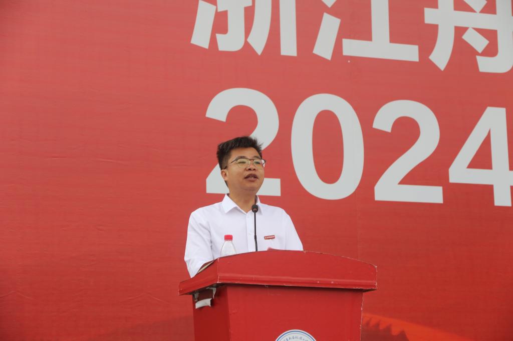 学校党委副书记、校长郑能波发表了重要讲话。他代表学校向全体新生致以最诚挚的欢迎,对承训教官们致以衷心的感谢,并向全体参训学员以及荣获表彰的先进集体和个人致以热烈的祝贺。郑校长深情回顾了学校十年的发展历程和辉煌成就,鼓舞同学们以坚定的意志和不懈的努力,共同谱写学校发展的新篇章。为此,郑校长向同学们提出了三点期望。一是志存高远,做挺膺担当的时代青年。他希望同学们能以中国新一代奥运冠军形象为榜样,勤学求知,掌握真才实学,在为祖国和人民奉献中实现人生价值。二是自强不息,做勇于奋斗的拼搏青年。他希望同学们能做自己的“天命人”,用勇于奋斗的姿态和自强不息的精神,走好自己的取经路,努力成为可堪大用、能担重任的栋梁之才。三是修身正己,做崇德向善的明德青年。郑校长指出,品德是做人之根本,修身立德,方能成参天大树,要将正确的道德认知、自觉的道德养成、积极的道德实践紧密结合。最后,郑校长勉励同学们多放下手机,多走向操场,多走进图书馆,不负盛世,奋斗其时!