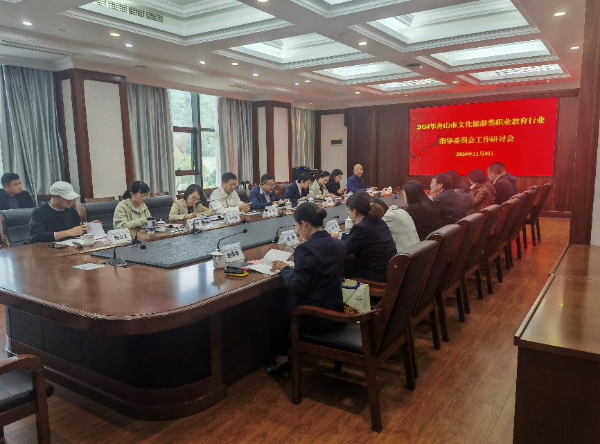 2024年11月8日下午,舟山市文化旅游类职业教育行业指导委员会工作研讨会在我校举行,来自市行业主管部门、市行业协会、市文旅企业、市职业院校的部分委员及我校部分教师代表出席了本次会议。舟山市文化旅游类职业教育行业指导委员会是2023年10月舟山市职业教育工作联席会议办公室发文成立的舟山市职业教育首批7个行指委之一,市文广旅体局为主任委员单位,我校为秘书处单位,负责日常事务并组织协调各相关单位开展工作。