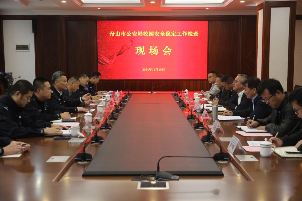 为进一步加强校园安全稳定工作,2024年11月18日,由市公安局副局长王海峰带队,市公安局及普陀山公安分局、市教育局联合对我校校园安全工作进行检查指导。校长郑能波、副校长孔志华和宣传部、学工部、保卫处负责人陪同检查并参加座谈。